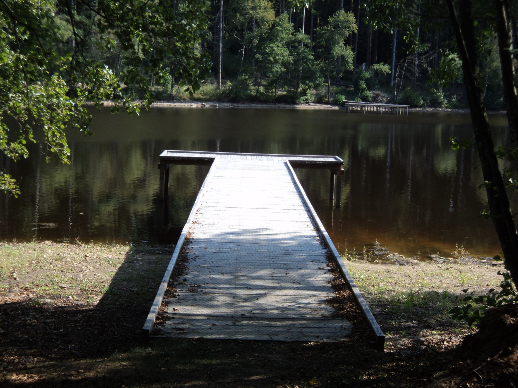 L'étang possède trois pontons et forme de L et deux pontons en forme de T pour un total de 140 mètres linéaires, afin d'éviter toute glissade, le bois a été recouvert de grillage aux mailles fines.
