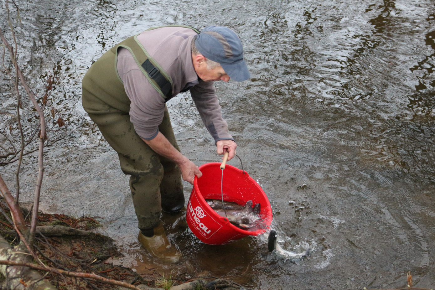 Mardi 10 mars aidé par quelques bénévoles, nous avons procédé au traditionnel lacher de truite surdensitaire en prévision de l'ouvertrure.