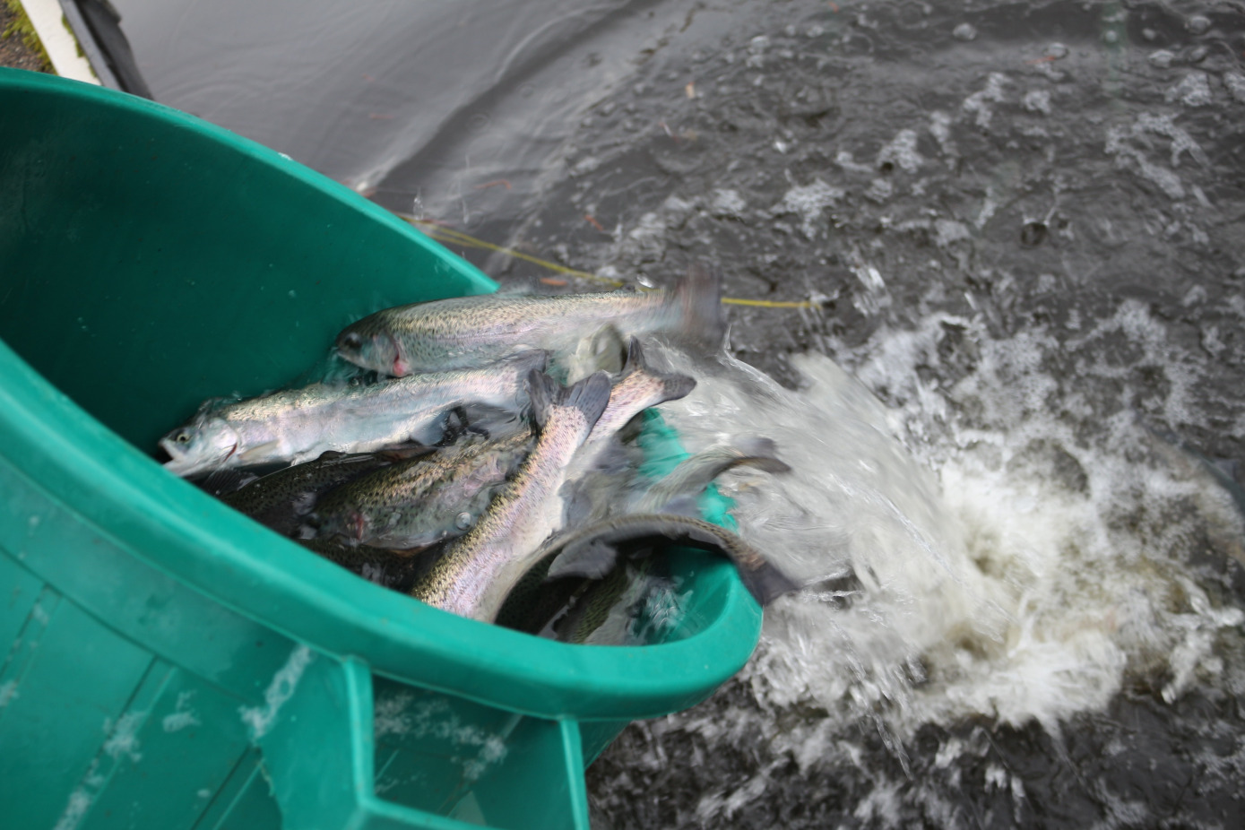 Au plan d'eau se sont 110 kg de truites Arc en ciel qui ont été déversées