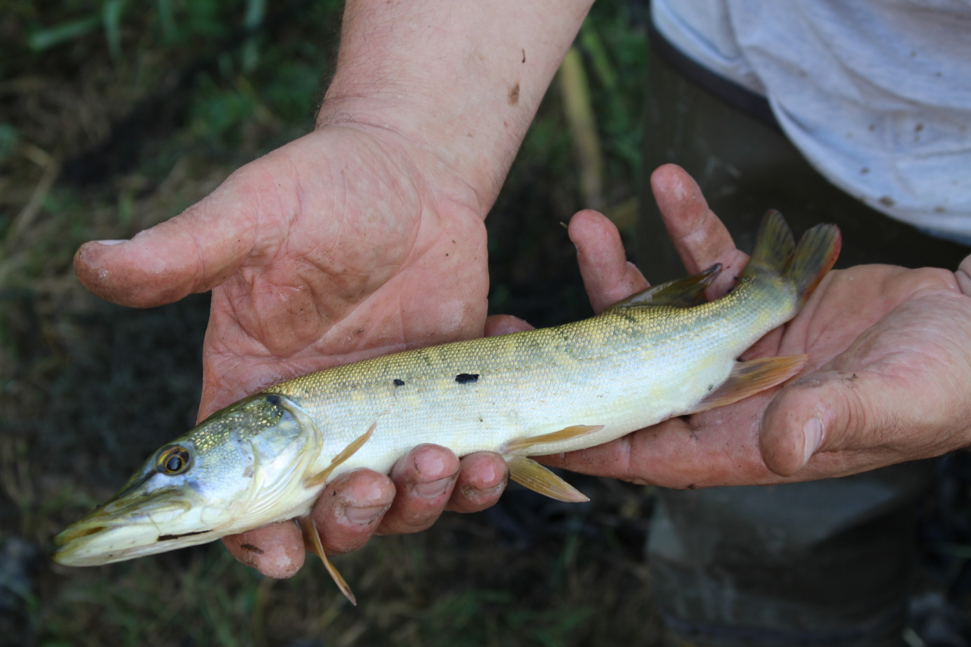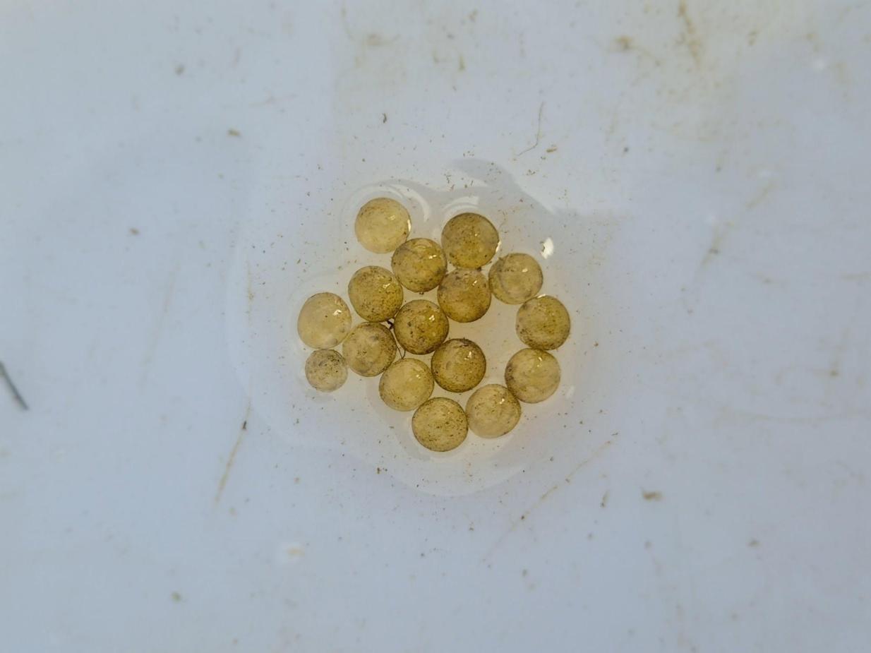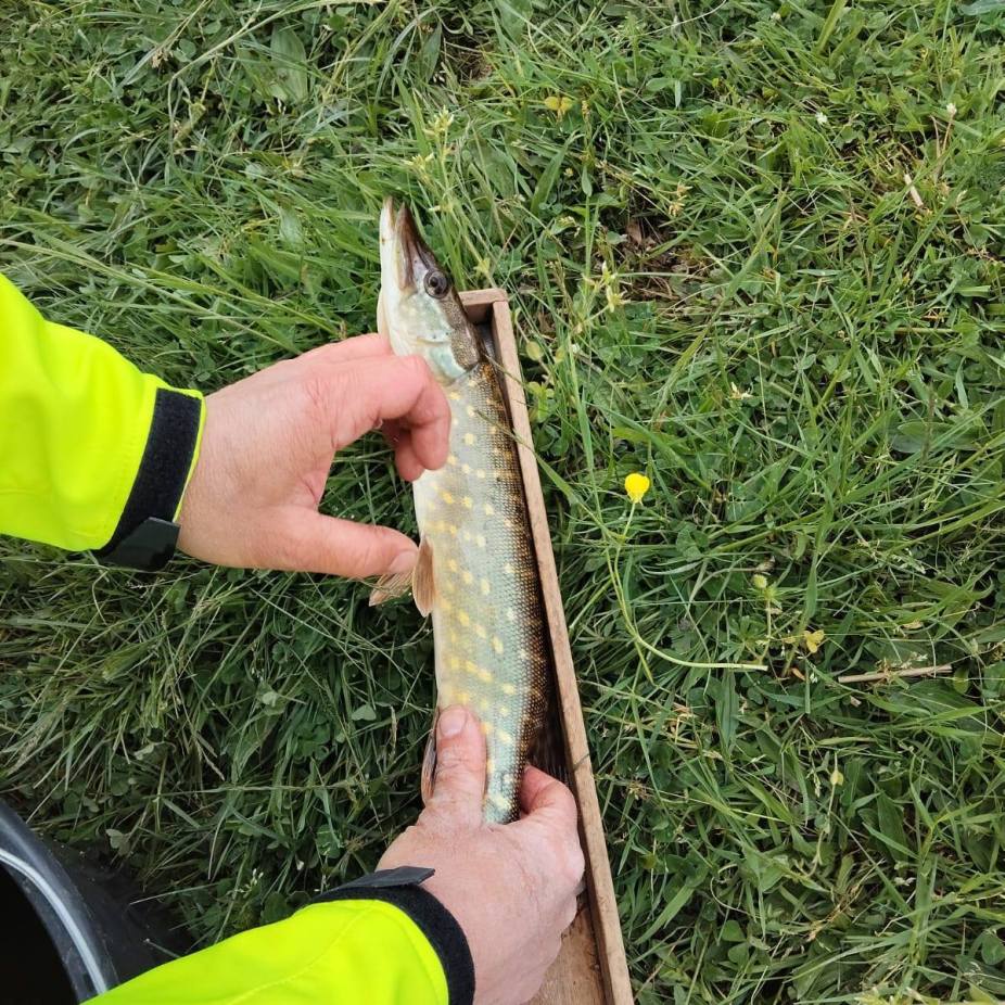Suite aux dernières crues et à l’installation des conditions printanières , le brochet étant en pleine période de reproduction, les techniciens de la Fédération de Pêche ont prospecté rapidement l’amont de la frayère de Surmoulin et ont trouvé une dizaine d’œufs en trois coups d’épuisette dans la végétation.