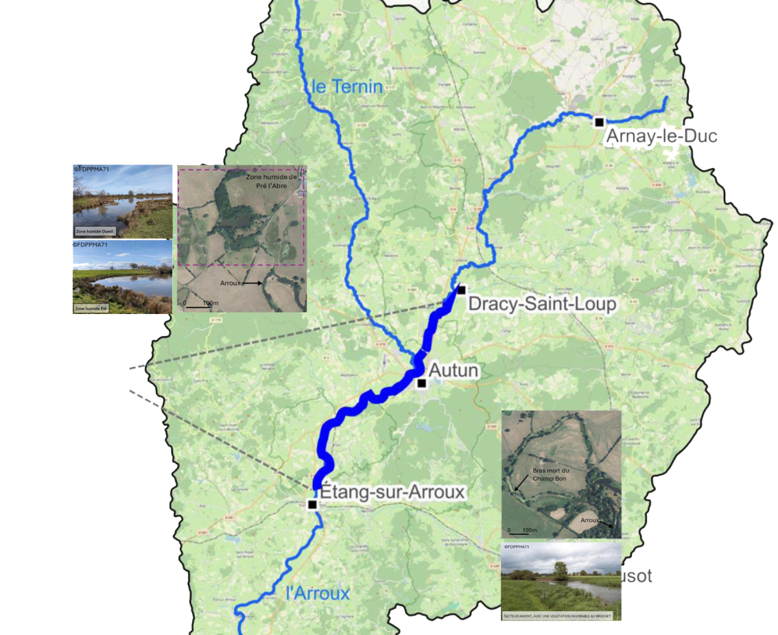 Depuis 2022, une étude est menée par les techniciens de la fédération de pêche afin d'analyser la population de brochets sur 23 km de l’Arroux en amont entre étang et Dracy St Loup.