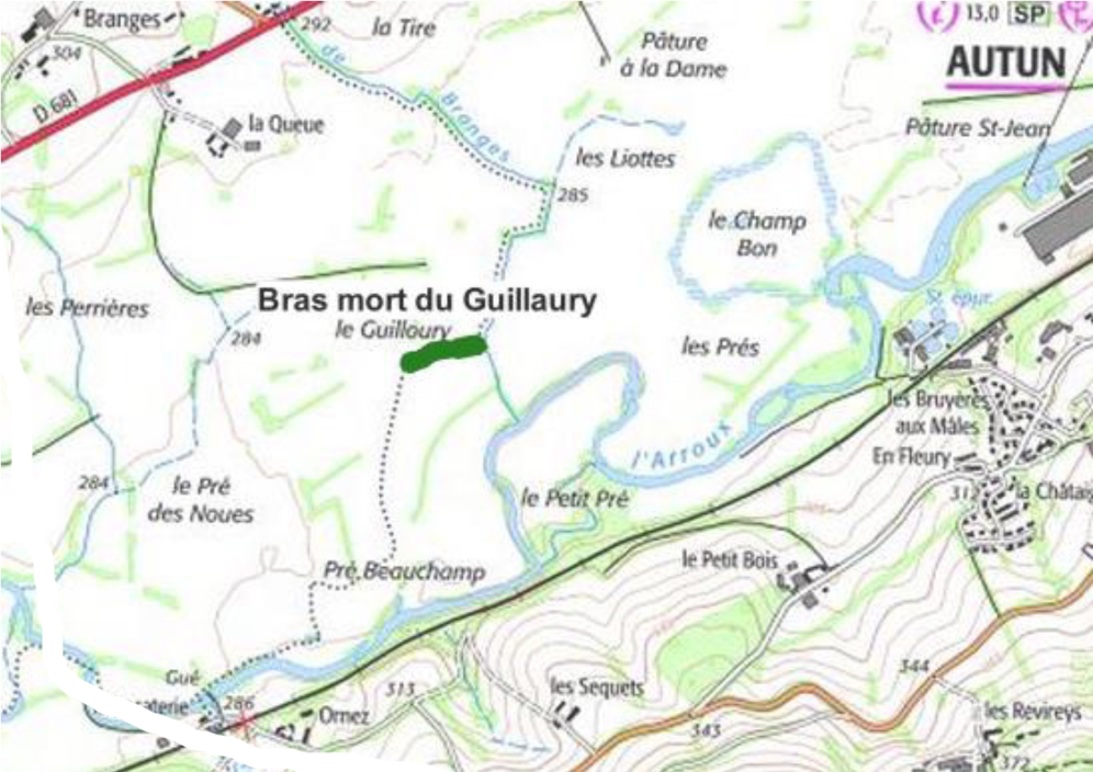 La modification du passage agricole par le déplacement du chemin ou la création d’un pont permettrait la restauration de la continuité entre les deux partie du bras mort.