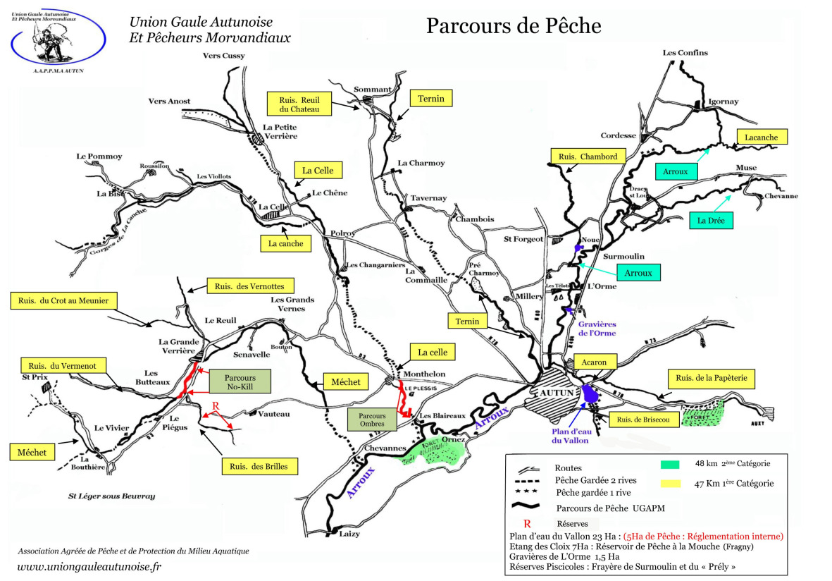 L'Union Gaule Autunoise met à disposition des pêcheurs l'un des parcours de pêche les plus étoffés et varié de Saône et Loire.